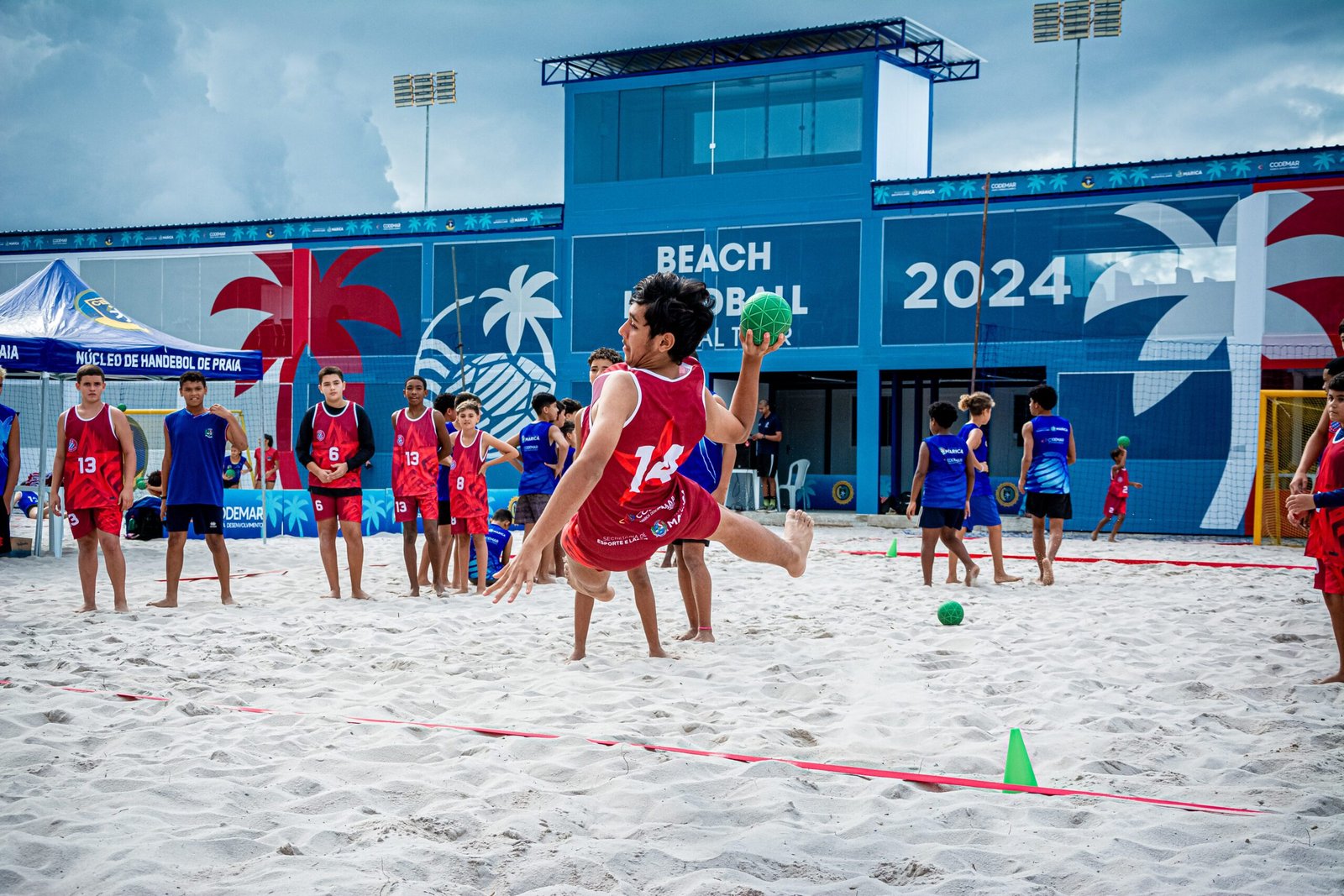 A Confederação Brasileira de Handebol (CBHb) promoveu neste sábado (25) um festival de handebol de praia, em Maricá, na Região Metropolitana do Rio de Janeiro. O evento teve mais de 100 crianças e foi na arena inaugurada neste mês, que recebeu o Global Tour, etapa do Circuito Mundial da modalidade.
