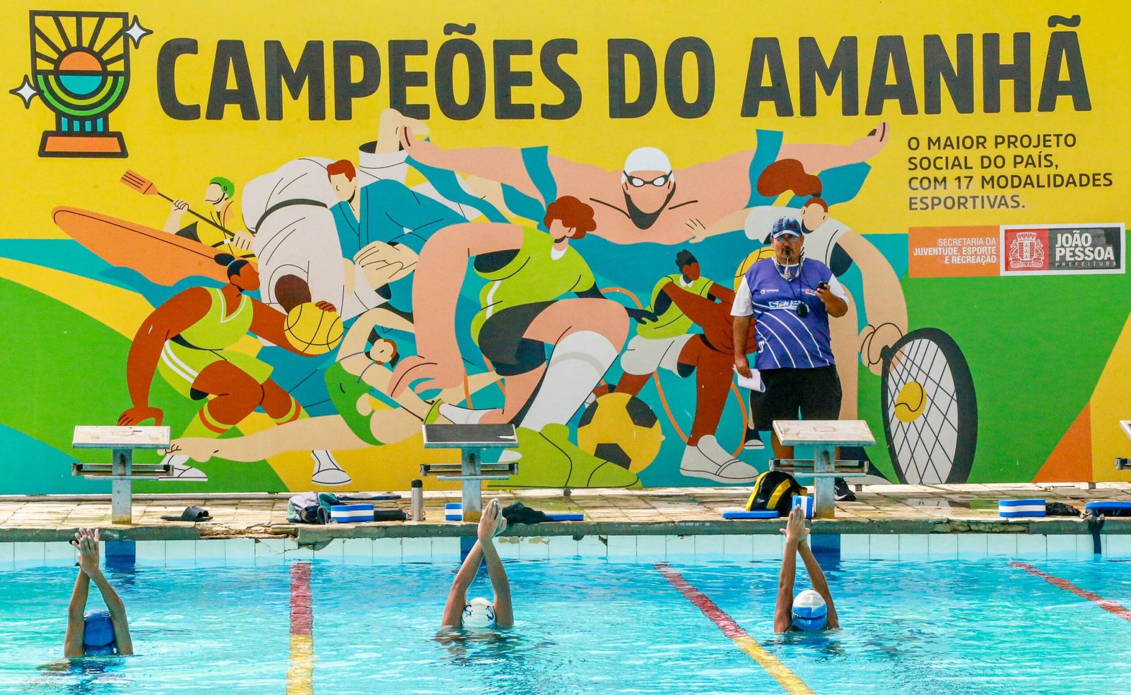 A Fundação Campeões do Amanhã, da Prefeitura de João Pessoa, começou nesta segunda-feira (31) as aulas de natação gratuitas para crianças e adolescentes, entre 8 e 17 anos. Com quase 800 alunos, as turmas na piscina do Centro Administrativo Municipal (CAM), em Água Fria, são na segunda, quarta e sexta nos turnos da manhã e da tarde, das 8h30 às 11h e das 14h30 às 17h30.